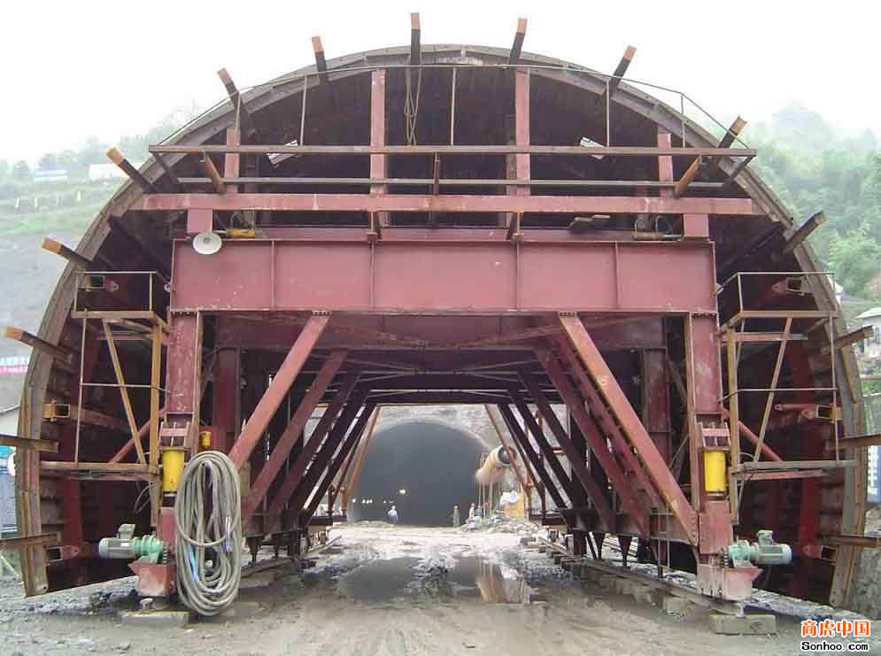 主要用于隧道,引水洞,二襯(二次襯砌)混凝土澆注使用,臺(tái)車又分為兩種結(jié)構(gòu)一種是穿行式另一種是針梁式,臺(tái)車主要由龍門架和模板組成,龍門架主要承重,模板是根據(jù)隧道形狀設(shè)計(jì)的。它具有自動(dòng)行走,液壓自動(dòng)定位脫模(可實(shí)現(xiàn)上,下,左,右移動(dòng))的優(yōu)點(diǎn)。